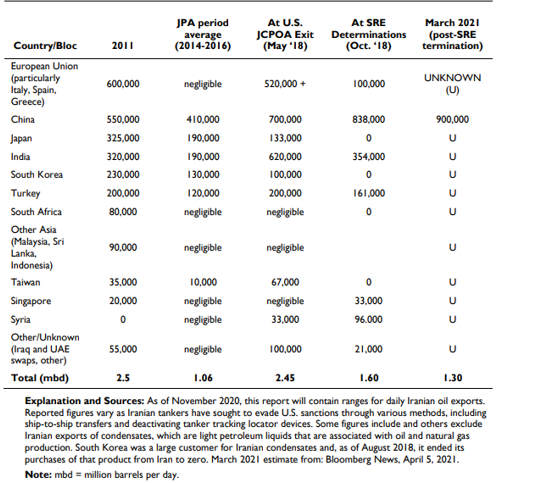 Source: CRS Report R43311, Iran: U.S. Economic Sanctions and the Authority to Lift Restrictions, by Dianne E. Rennack.