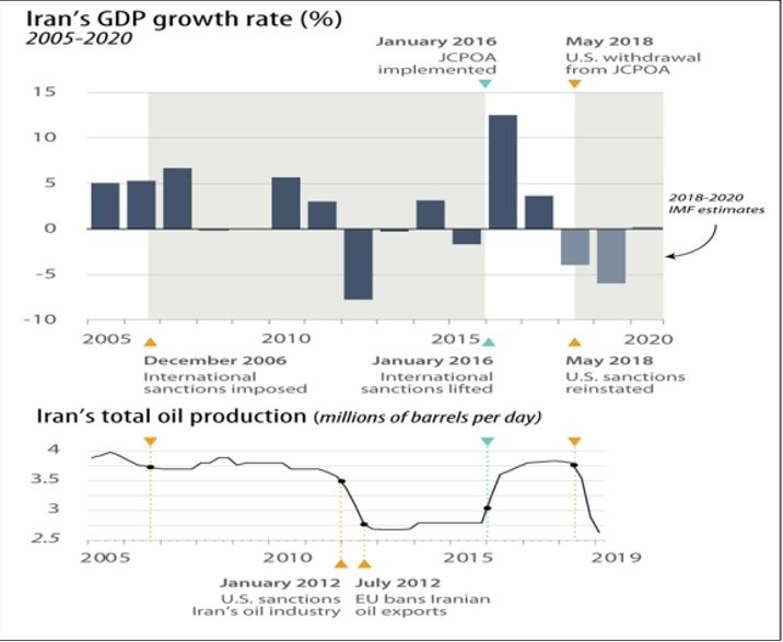 A large part of Iran's foreign trade and income consists of oil exports and petroleum-oriented industrial products. Therefore, it is necessary to learn whether international and unilateral Sanctions have a positive or negative effect on Iran's economic growth - along with the increase in government spending. As can be seen from the table, Iran's oil production is in a controlled manner, starting from 2006 until the US sanctions in January 2012 and the European Union's prohibition of oil exports from Iran in July of the same year. It should be added here as a note that China, to which Iran is assisted in breaking sanctions and exporting oil, has also significantly reduced oil production. From the implementation of the JCPOA in January 2016 to May 2018, during the period when the USA withdrew from the JCPO and imposed the sanctions again, economic growth is seen with oil exports. Hence, it can be said that the sanctions on oil hinder Iran's economic growth.