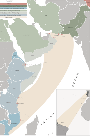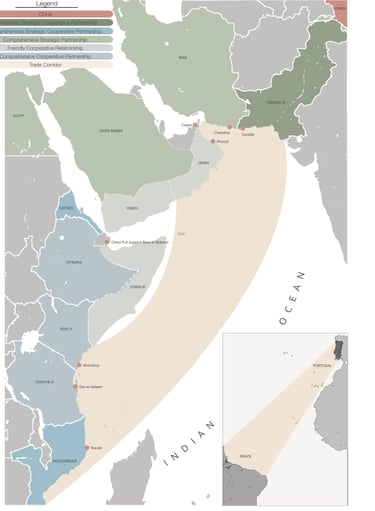 Iran's Belt and Road initiative role not only provides a great role for China in accessing Africa, it is also of great value for transportation to Europe via Turkey and to Oman via the Persian Sea. As seen on the map above, Pakistan and Iran are two important points for the China West Indian Ocean geoeconomics strategy.